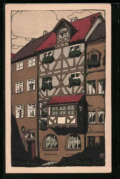 Steindruck-AK Nürnberg, Ansicht vom Hans-Sachs-Haus