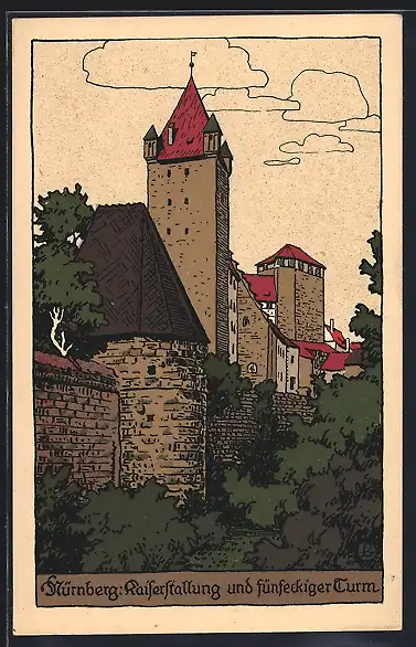Steindruck-AK Nürnberg, Kaiserstallung mit fünfeckiger Turm