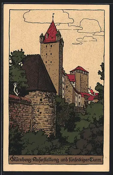 Steindruck-AK Nürnberg, Kaiserstallung mit fünfeckiger Turm