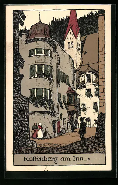 Steindruck-AK Rattenberg am Inn, Strassenpartie mit Gebäudeansicht