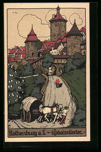 Steindruck-AK Rothenburg o. T., Am Kobolzellertor