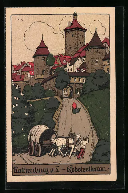 Steindruck-AK Rothenburg o. T., Kobolzellertor