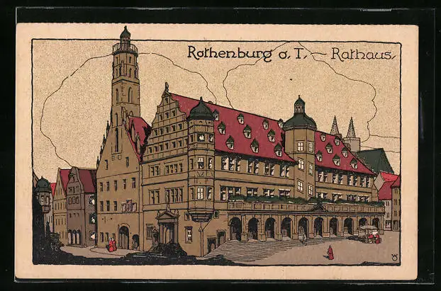Steindruck-AK Rothenburg o. T., Partie am Rathaus