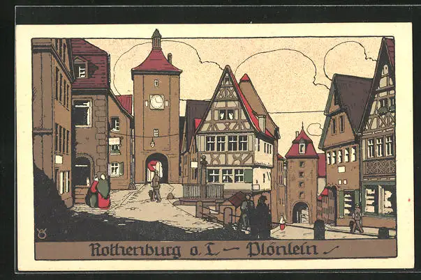 Steindruck-AK Rothenburg o. T., Plönlein mit Toren