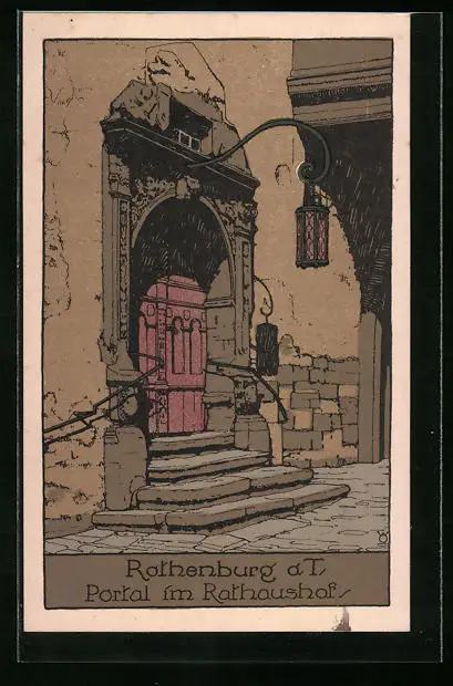 Steindruck-AK Rothenburg o. T., Portal im Rathaushof