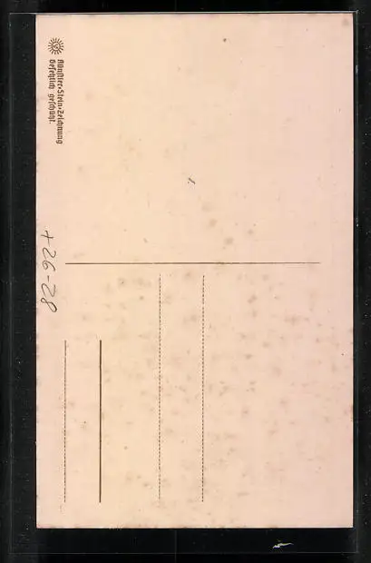 Personenbezogene Daten auf der Rückseite der Karte wurden durch blauen Textmarker unkenntlich gemacht. Die blauen Stellen sind auf die Vorderseite durchgeweicht und wirken sich negativ auf das Postkartenfoto aus