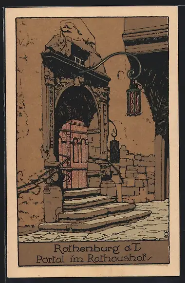 Steindruck-AK Rothenburg o. T., Portal im Rathaushof