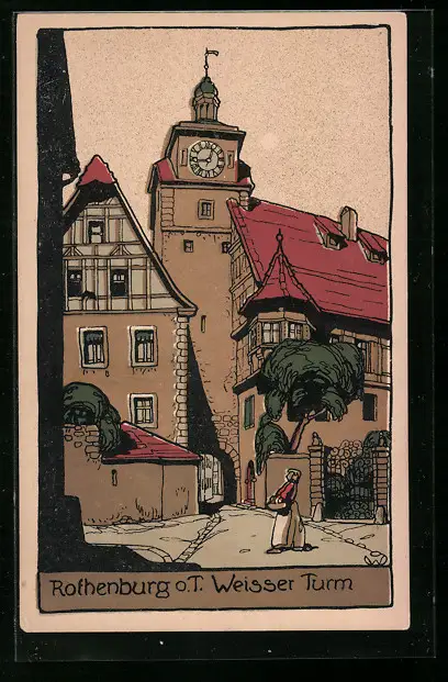 Steindruck-AK Rothenburg o. T., Weisser Turm