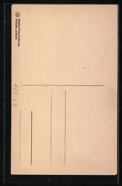 Personenbezogene Daten auf der Rückseite der Karte wurden durch blauen Textmarker unkenntlich gemacht. Die blauen Stellen sind auf die Vorderseite durchgeweicht und wirken sich negativ auf das Postkartenfoto aus
