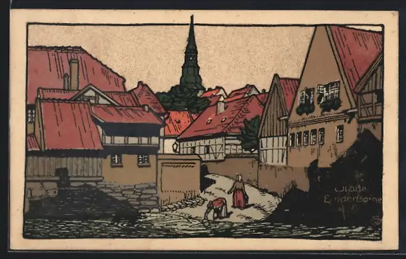 Steindruck-AK Stade, Strasse Bei der Börne