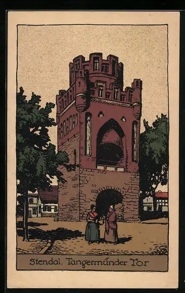 Steindruck-AK Stendal, Ansicht vom Tangermünder Tor