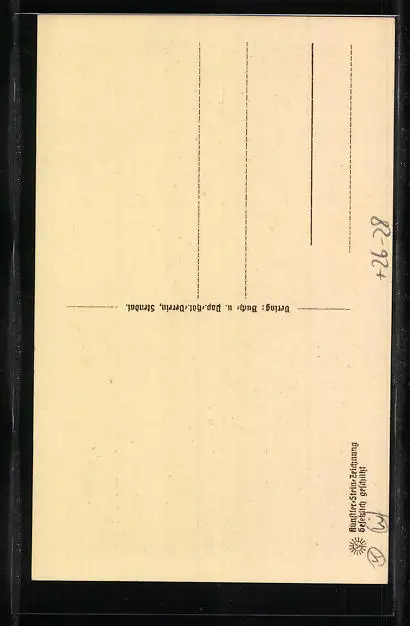 Personenbezogene Daten auf der Rückseite der Karte wurden durch blauen Textmarker unkenntlich gemacht. Die blauen Stellen sind auf die Vorderseite durchgeweicht und wirken sich negativ auf das Postkartenfoto aus
