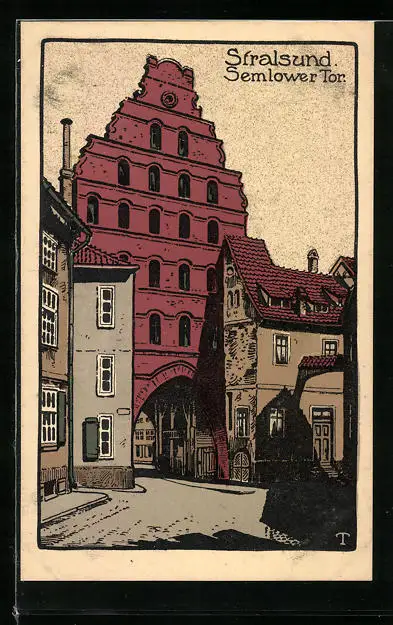 Steindruck-AK Stralsund, Semlower Tor