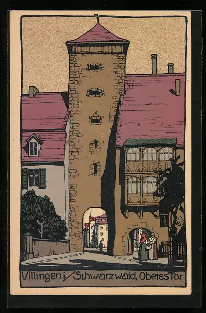 Steindruck-AK Villingen /Schwarzwald, Oberes Tor
