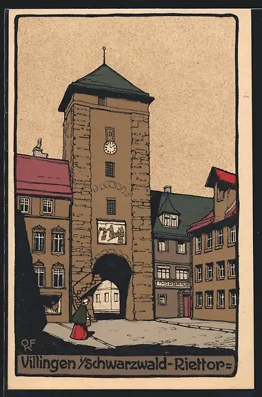 Steindruck-AK Villingen /Schwarzwald, Riettor mit Verzierungen