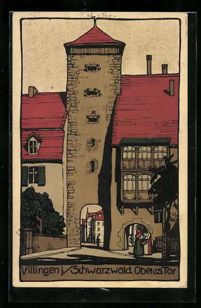 Steindruck-AK Villingen /Schwarzwald, Strassenpartie am oberen Tor