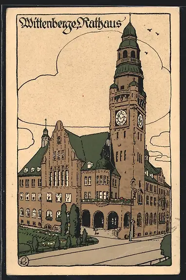 Steindruck-AK Wittenberge, Ansicht vom Rathaus