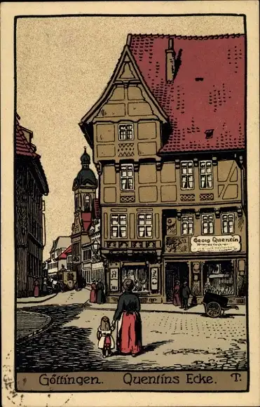 Steindruck Ak Göttingen in Niedersachsen, Quentins Ecke, Geschäft Georg Quentin