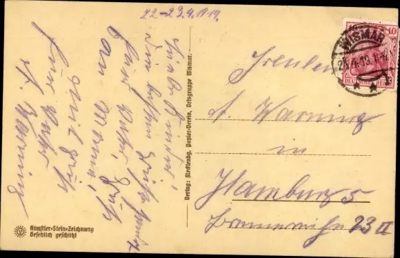 Zustand, siehe Scan, gelaufen, 1919 - ca 9 cm X 14 cm
