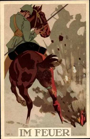 Steindruck Ak Im Feuer, Dragoner, Kavallerie, Einschlag, I. WK