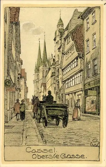 Steindruck Ak Kassel in Hessen, Oberste Gasse
