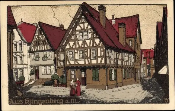Steindruck Ak Klingenberg am Main Unterfranken, Stadtpartie