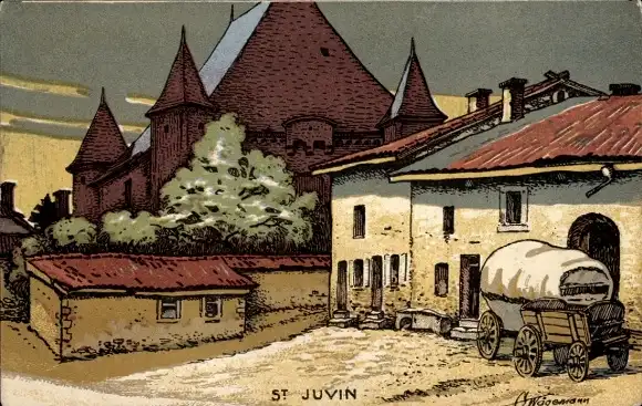 Steindruck Ak Saint Juvin Ardennes, Bauernhof, Kirche