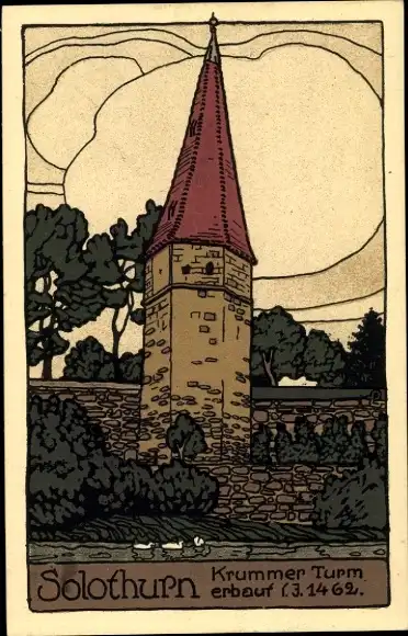 Steindruck Ak Solothurn Stadt Schweiz, Krummer Turm