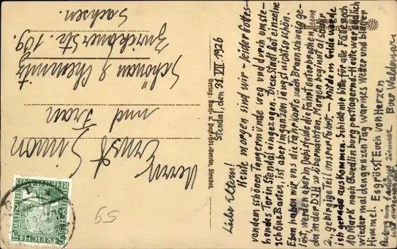 Zustand, siehe Scan, gelaufen, 1926 - ca 9 cm X 14 cm
