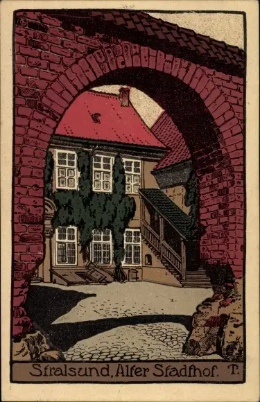 Steindruck Ak Stralsund in Vorpommern, Alter Stadthof