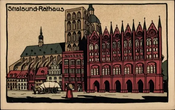 Steindruck Ak Stralsund in Vorpommern, Rathaus
