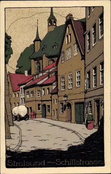 Steindruck Ak Stralsund in Vorpommern, Schillstraße