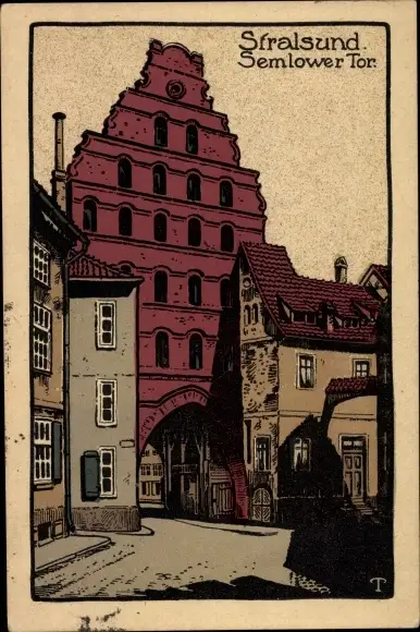 Steindruck Ak Stralsund in Vorpommern, Semlower Tor