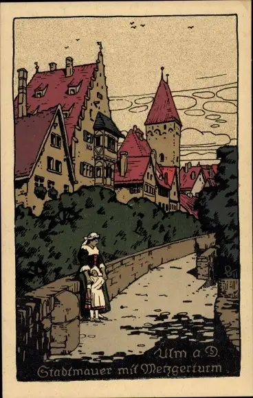 Steindruck Ak Ulm an der Donau, Stadtmauer, Metzgerturm