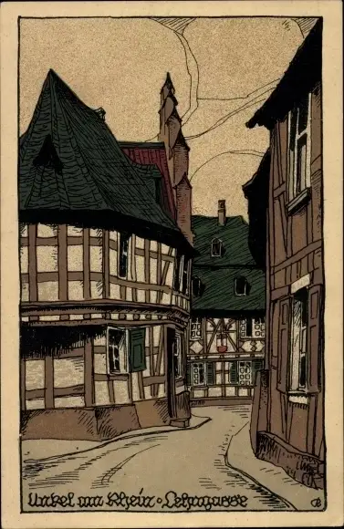 Steindruck Ak Unkel am Rhein, Lehngasse