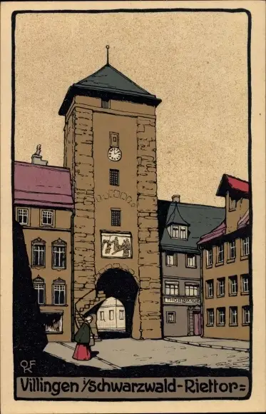 Steindruck Ak Villingen im Schwarzwald, Riettor