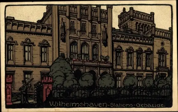 Steindruck Ak Wilhelmshaven, Stationsgebäude