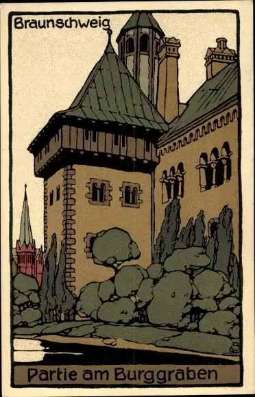Steindruck Künstler Ak Braunschweig in Niedersachsen, Partie am Burggraben