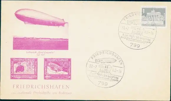 Stempel 125. Geburtstag Graf Zeppelin 1963, Friedrichshafen am Bodensee, Luftschiff LZ 127