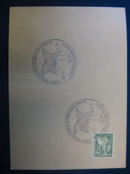 Stempelkarte Raumfahrt: Stempel Karl-Marx-Stadt 1966; 1. Weiche Mondlandung