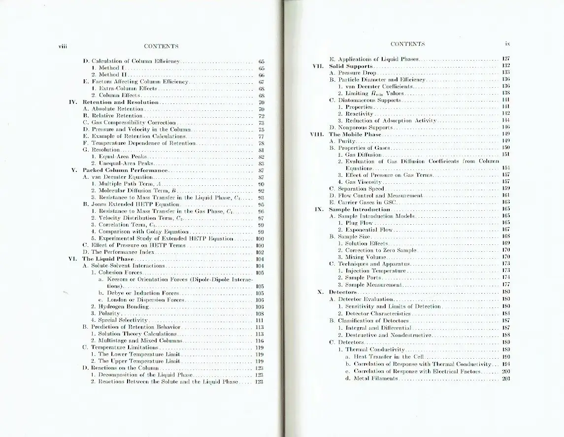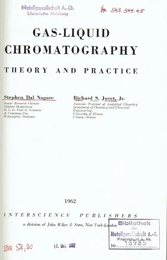 guter Zustand, Gebrauchs- und Alterungsspuren: ehemaliges Bibliotheksexemplar - Titel mit Stempeln und Notizen - Deckel innen mit angeklebtem Papierrest - Vorsatz und Schmutztitel mit weiterem Stempel - Seiten aber sauber und ordentlich - Rückseite wegen abgelöstem Aufkleber oberflächlich teils etwas verfärbt (beschabt), This book presents a comprehensive survey of the field of gas chromatography with, as the title suggests, primary emphasis on the gas-liquid technique. As noted in Chapter 1, the growth of this separation technique is increasing at a rate of more than 40 per cent per year, 10 years after its inception. This clearly is a tribute to the creativity of its inventor, Dr. A. J. P. Martin, without whose contributions chromatography would not be the broad and interesting area of endeavor it is. For the authors, this growth necessarily created complications, such as continual manuscript revision (to September 1961) and, later, limited revision of the galleys. A modest success in keeping abreast of the literature is indicated by the inclusion of numerous 1961 and a few 1962 references. This book is designed primarily for workers in the field of gas chromatography and for graduate students and industrial research chemists in chemistry, petroleum, food, medicine, and the many other fields in which this technique has proved so useful. It is hoped that this book will prove useful as a supplementary text in the several short courses in gas chromatography presented each year throughout the country. We have attempted to write the book in such a way that the beginner in the field would have a working knowledge of gas chromatography after reading the first four chapters. The remaining chapters discuss areas of gas chromatography in detail and are intended to acquaint the reader with the most recent advances. As a result of many discussions with individuals and groups, the authors have become aware of a need for relating the fundamentals of gas chromatography to parameters which can be experimentally con-trolled. To this end, theory, apparatus, and practice, together with a limited consideration of applications, have been combined in this volume. Care has been taken to include as much useful information as possible. In many cases, the theoretical conclusions have been correlated with laboratory experience, as reported in the literature or observed by the authors and their co-workers. This is emphasized in Chapter 2, dealing with practical aspects of gas-liquid chromatography. Additional experimental considerations are included in the chapters dealing with qualitative and quantitative analysis, trace analysis, the separation of high boiling compounds, special, Leinen, ca. 16 x 23,5, 450 Seiten mit zahlreichen Bildern