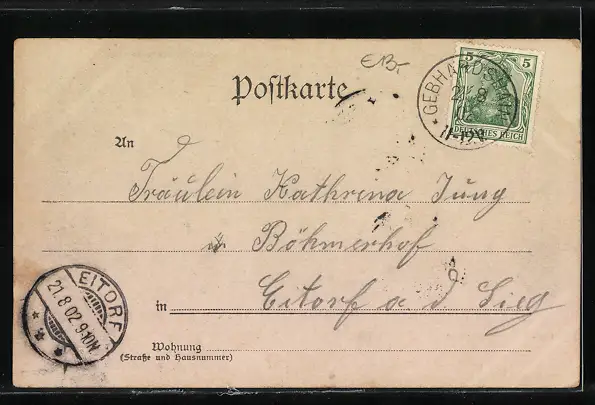 alte Ansichtskarte, gelaufen 1902, guter Zustand