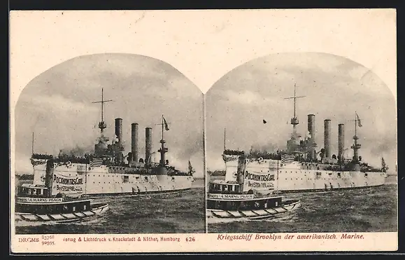 Stereo-AK Kriegsschiff mit Besatzung an Deck