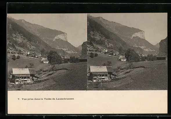 Stereo-AK Lauterbrunnen, Vue prise dans la Vallée de Lauterbrunnen