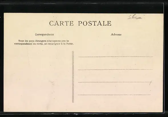 Personenbezogene Daten auf der Rückseite der Karte wurden durch blauen Textmarker unkenntlich gemacht. Die blauen Stellen sind auf die Vorderseite durchgeweicht und wirken sich negativ auf das Postkartenfoto aus
