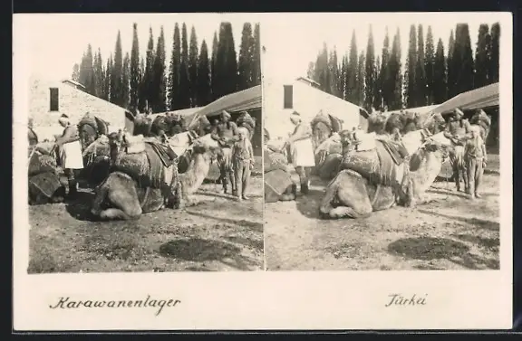 Stereo-AK Türkisches Karawanenlager mit Kamelen