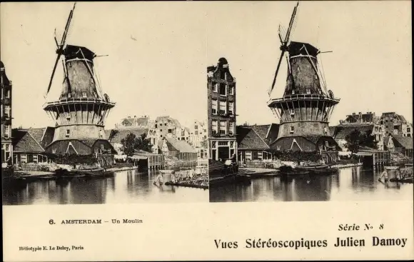 Stereo Ak Amsterdam Nordholland Niederlande, Windmühle