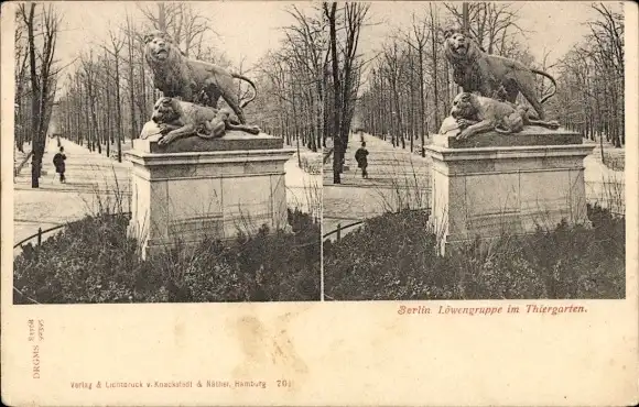 Stereo Ak Berlin Tiergarten, Löwengruppe