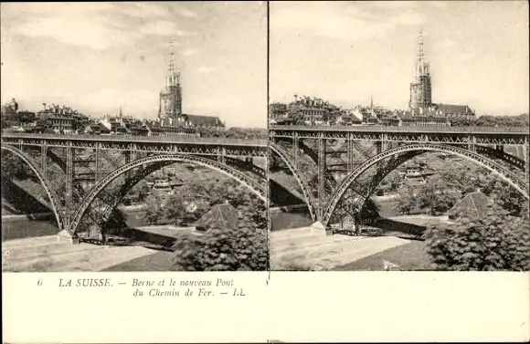 Stereo Ak Bern Stadt Schweiz, Neue Eisenbahnbrücke