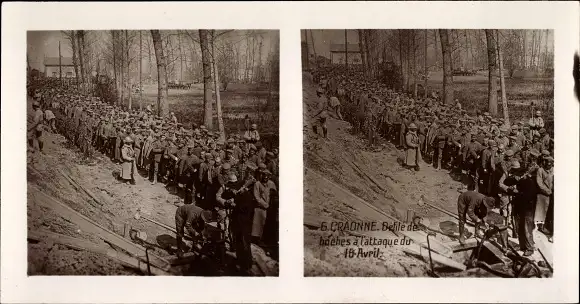 Stereo Ak Craonne-Aisne Parade der Bochea zum Angriff vom 10. April, I WK